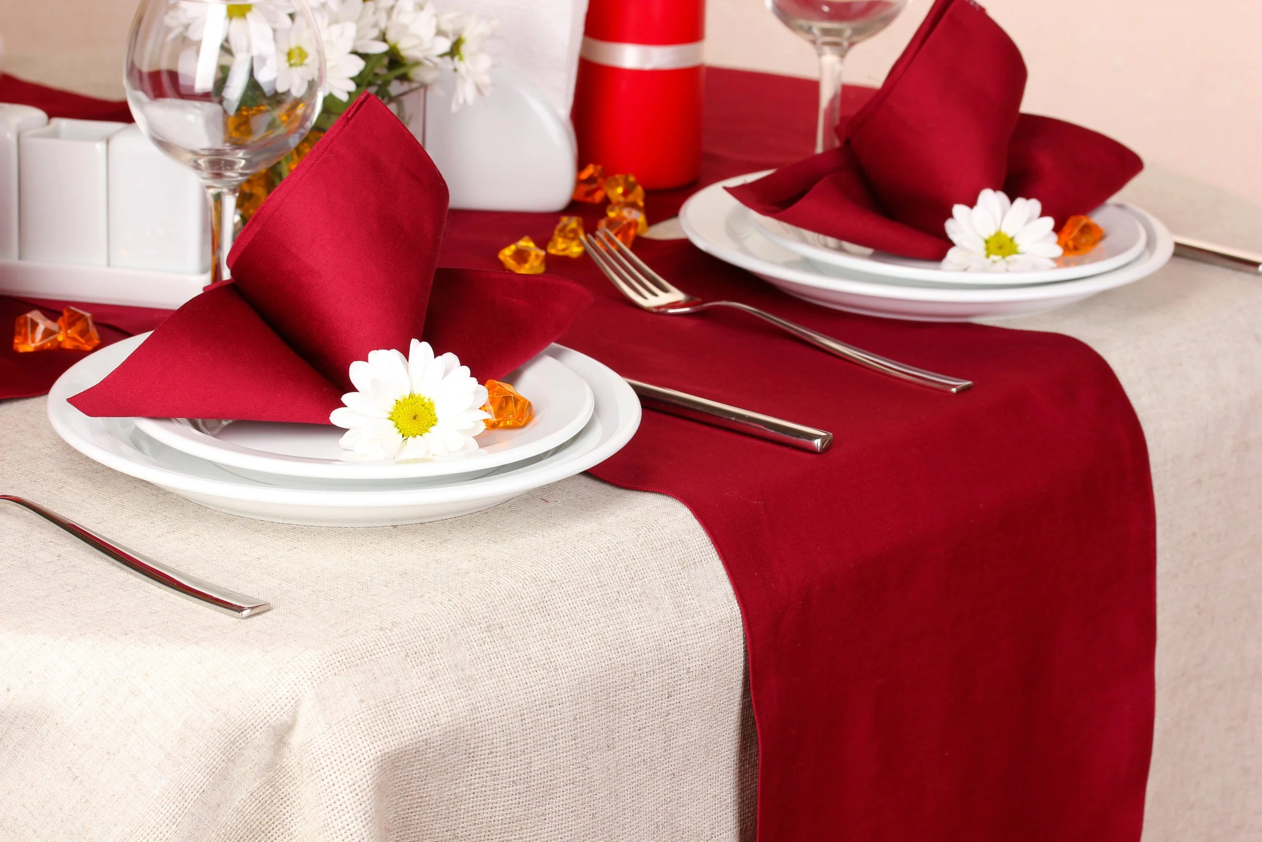 We specialize in pristine cerise tablecloths, napkins, and table runners, crafted to bring a refined touch to any occasion in Livermore and beyond.